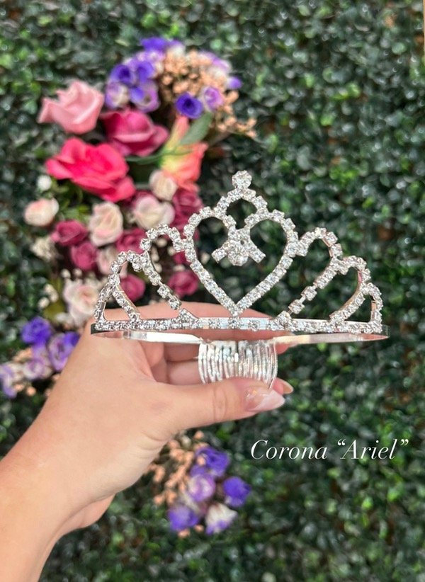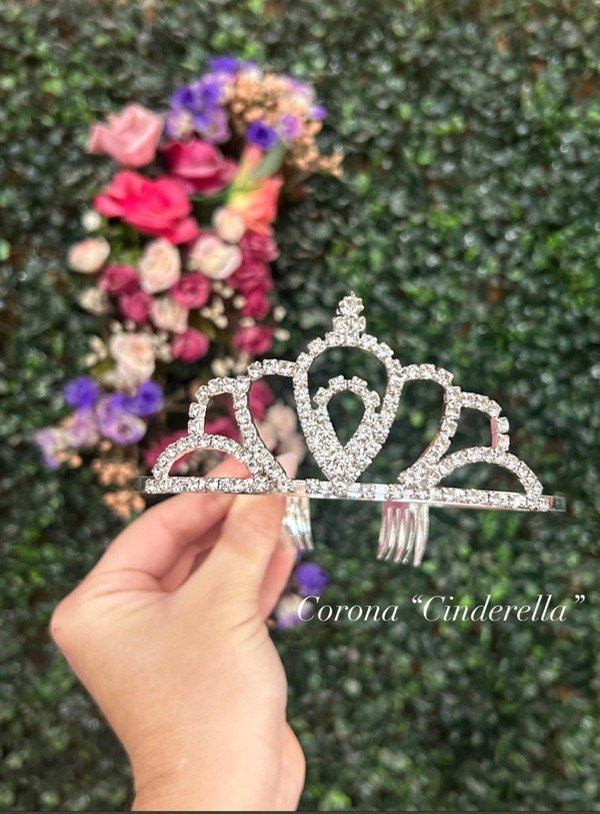 La corona “Cinderella y ariel” están diseñadas para realzar cualquier look con elegancia y glamour. Su estructura plateada y cristales brillantes la convierten en el accesorio ideal para maquillajes, peinados, sesiones de fotos o eventos especiales.
