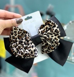 Este moño animal print de City Girl combina el estilo salvaje del estampado con la elegancia del lazo negro, creando un contraste perfecto. Ideal para darle un toque de personalidad a cualquier peinado —desde coletas altas hasta semi recogidos—.