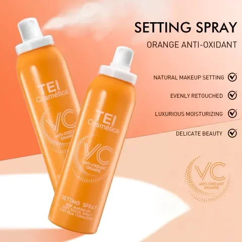 El Setting Spray de TEI Cosmética fija tu maquillaje durante horas, dejando la piel fresca, luminosa y con un acabado natural. Su fórmula con vitamina C y extracto de naranja aporta hidratación y un efecto antioxidante que ayuda a proteger la piel de los radicales libres.