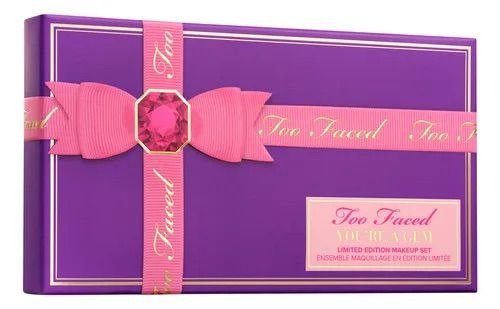 ¡Brilla como nunca con este exclusivo set de maquillaje de Too Faced! Presentado en un elegante estuche color púrpura con detalles dorados y un lazo rosa con gema, este kit es perfecto para regalar o consentirte.